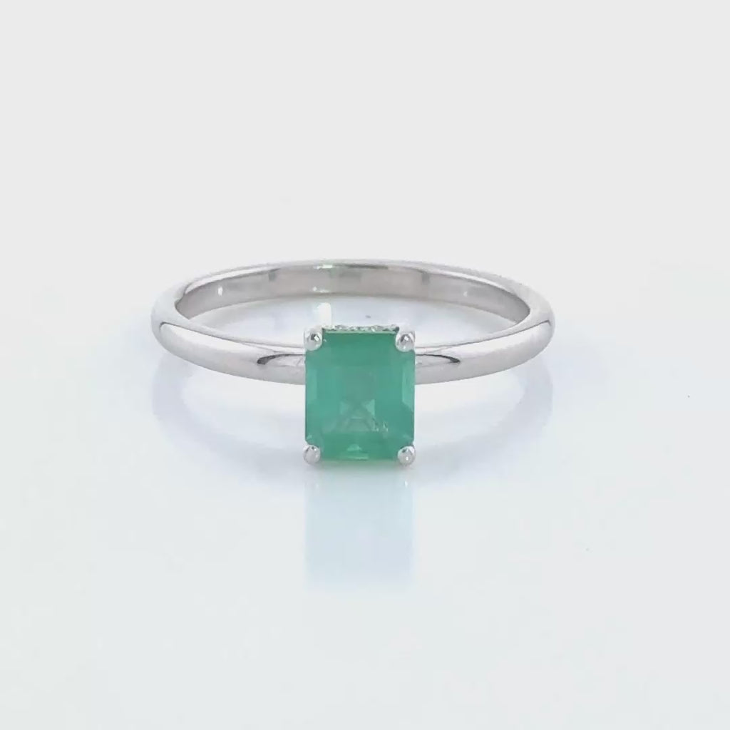 טבעת אמרלד 0.78 קרט זהב לבן 14K עם הילה נסתרת - טוטאל 0.87 קרט