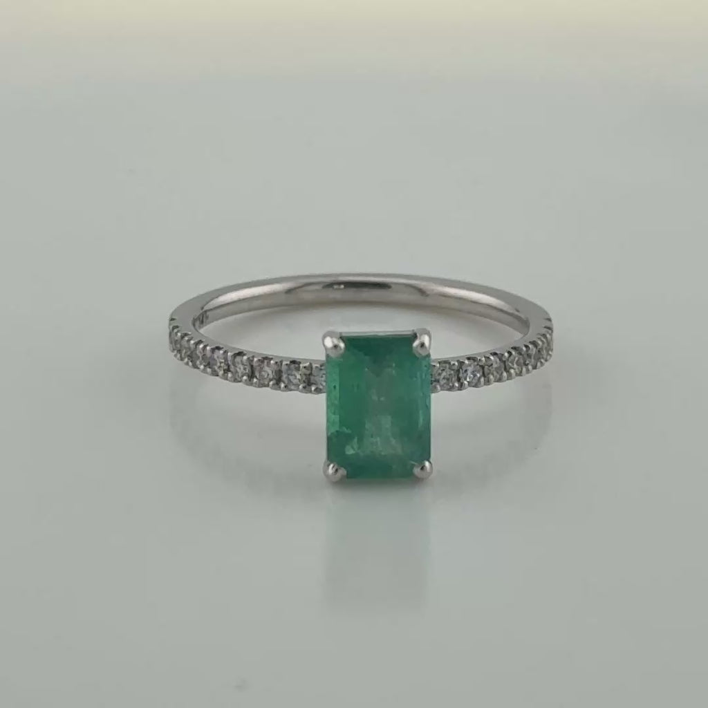 טבעת אמרלד 0.92 קרט זהב לבן 14K שיבוץ יהלומים פווה - טוטאל 1.1 קרט